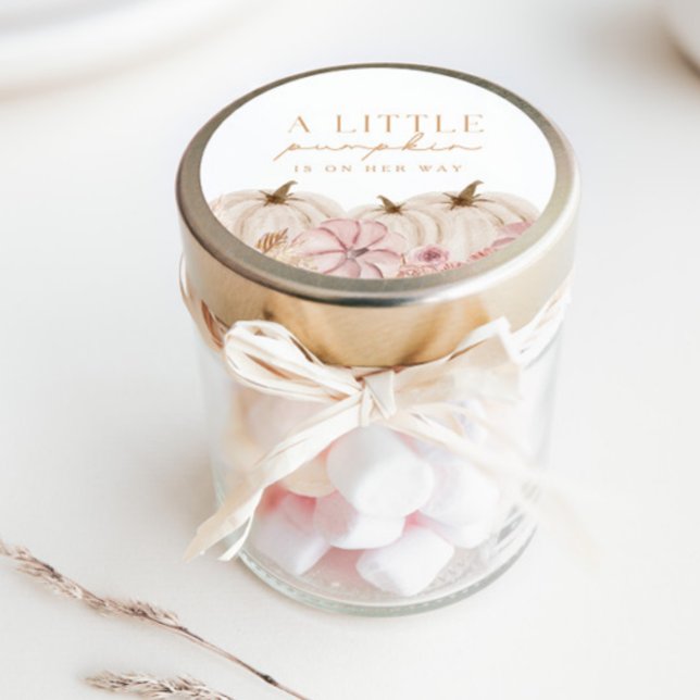 Elevate your upcoming autumn baby shower to an ethereal realm of rustic charm with our exquisite Boho Pampas Grass Pink Pumpkin customisable favour or envelope seal stickers. This captivating – yet simple – design effortlessly melds the bohemian allure of pampas grass and the soft elegance of pink pumpkins with a touch of luxury through the inclusion of golden typography and a tastefully curated mix of cursive and serif fonts.