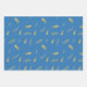 Boho Golden Feathers French Blue Wrapping Paper Sheet