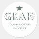 Boho graduation party favour sticker featuring typography text that says "GRAD" in a mystical typography font. The colour is in green.