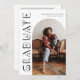 Stylish and modern graduation announcement card to send out to family and friends. There is a white arch frame around your photo. You can add a second picture on the back and the message is editable. It says "graduate" on the side of the card in celestial and boho typography font.