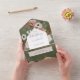 AVAILABLE WITH OR WITHOUT A QR CODE OR WITH OR WITHOUT DINNER SELECTION OPTIONS. This design features bouquet of burgundy marsala, pink blush, and white flowers on a soft green background that has been distressed with champagne gold. Add a QR code to your invitation so that gusts can quickly access your wedding Website for details, directions, menu options, and more, or add your gift registry Web URL. Personalised All-In-One invitations are a unique combination of both a beautifully printed custom invitation with an easy to tear off perforated RSVP postcard. And they are so easy to use! You simply fold, then seal the back flap with the three included clear stickers, and mail. And when your guests receive your custom invite, they just tear the perforated RSVP Card off and drop it back in the mail to you!