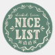 This sticker features a design with “Nice list” and “checked twice” written in cream on a green background. This would be perfect as a Christmas gift sticker or to decorate parcels or Christmas Card envelopes to make them look like they have been delivered from Santa’s workshop.