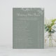 This boho green destination floral wedding shoe game is perfect for a rustic wedding. The design features watercolor apple blossoms and flowers in a green background.