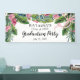 Boho Green Leaves | Pink Hibiscus Graduation Party Banner