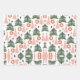 Cute Rustic Boho green pink and rust coloured Christmas trees on these wrapping paper sheets.