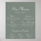 This boho green calligraphy wedding bar menu is perfect for a rustic wedding. The design features watercolor apple blossoms and flowers in a green background.