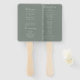 This boho green destination wedding program hand fan is perfect for a rustic wedding. The design features an elegant calligraphy font in a green background to embellish your event.
