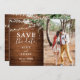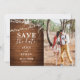 Boho rustic wedding save the date features greenery and string lights.