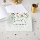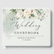 This is charming modern guest book featured greenery foliage, and white roses and fresh eucalyptus combined gold glitter sparkles at the pastel background
