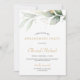 Boho greenery eucalyptus gold splashes engagement invitation