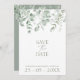 Boho Greenery Eucalyptus Wedding Save The Date Card. Announce your wedding with this minimalist save the date, featuring soft eucalyptus greenery and elegant script. The light botanical design is ideal for nature-loving couples planning a boho, garden, or outdoor celebration.