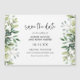 Custom printed wedding Save the Date magnetic cards with an easy to use template and fully editable fonts and colours. Add your wedding details surrounded by a pretty botanical frame of boho watercolor greenery leaves and branches. Use the design tools to edit text fonts and colours or add photos to design your own unique modern rustic wedding Save the Date magnets.