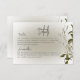 This wedding details enclosure card design features a simple, soft side loose bouquet of botanical greenery on a soft green oval blur on a white background. It's delicate and elegant. Created by Simply Farmhouse Press, it is part of the Boho Greenery Modern Floral Wedding suite of cards.