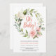 Boho greenery pink roses white hydrangea Oh Baby Invitation