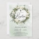 Boho greenery wreath white roses olive Baptism Invitation