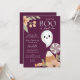 Celebrate your little one with a touch of spooky charm! This Boho Halloween Baby Shower Invitation features a purple plum background adorned with adorable ghost illustrations, delicate florals, and festive candy corn accents. Perfect for parents who love a whimsical, bohemian twist on Halloween festivities.