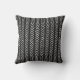This modern outdoor throw pillow features a boho pattern of whimsical hand-drawn arrows in white on a black background.