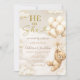 Boho He Or She Beige Balloons Bear Gender Reveal Invitation