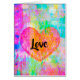 This card is all about celebrating love and colour. Colours include pink, red, orange, lime green, aqua, purple and more. The colours inside the card can be customised to suit your needs. You can add text on here or buy it blank and write from the heart.