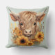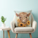 Boho Highland Cow Sunflowers Sage Green Cushion