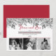 Boho three photo "Peace and Love" red and grey watercolor holly and berries floral holiday design. Simply add your photos--black and white or colour. Add your family name, first names and the year on front and you are all set. Composite design by Holiday Hearts Designs (rights reserved).