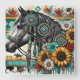 This wall clock features a vibrant horse design with sunflowers, feathers, and turquoise accents in a bold bohemian style. Combining rustic western charm with artistic detail, it’s perfect for adding colour and personality to your space. A striking timepiece for equestrian and nature-inspired home decor.