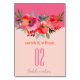 Boho Hot Pink Orange Watercolor Floral Wedding Table Number