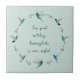 Ceramic tile for hummingbird lovers featuring a wreath of North American hummingbirds such as Violet-eared, Broad-billed and Rufous-tailed Hummingbirds and the quote "Time spent watching hummingbirds is never wasted." Quote and bird images by C. Dobbins.
