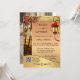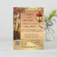 Elegant boho chic wedding invitation featuring a festive lantern with floral swirls on a gold with rose gold background. On the left is a fall forest scene with colorful autumn leaves and playful light sparkles. You can add your own website URL (or delete the QR code) and also replace the photo on the back with your own photo.
