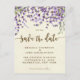 A pretty boho lavender floral design save the date postcard. Easy to change the text details to your own. Lots of matching stationery in this pretty collection. Please visit my shop to see the full range.