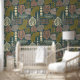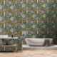 Bold boho leaf and line pattern in earthy green peel and stick wallpaper style.