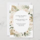 A cute rustic baby shower invitation featuring a boho style floral frame with pink roses and palmetto leaves. Earthy hues of cream and green on an apricot cream background. Let the adventure begin with little pink heart.