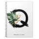 Customisable letter Q monogram notebook featuring watercolor tropical monstera leaf, faux gold foil leaf and black watercolor brush accents. Personalise this tropical monogram notebook by your name or other details. This boho letter Q monogram notebook will be perfect as a gift. Other letters are available.