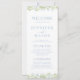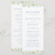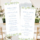 Delight in the rustic allure of watercolor wedding menu cards, adorned with exquisite light blue wildflower blooms and lush greenery leaves, enhanced by delicate calligraphy text. Elevate your wedding dining experience with this charming touch.
