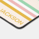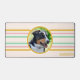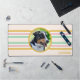 This design features retro boho line art in pastel colour stripes. Unique artsy personalised desk mat with round frame template for your dog photo and editable name text. Easily personalise this table mat to make it yours. If you need help for the customisation of the product or need more products from this collection please message me via Zazzle.