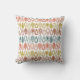 This throw pillow has a Boho design of pointy ovals in Boho shades pf pink, blue, gold, and brown.