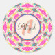 This design is a mandala tribal pattern in bright colours including teal, orange, white and pink.