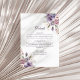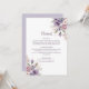 Share all the essential information for your big day with this Boho Mauve and Lilac Floral Wedding Details Card. Featuring a romantic bouquet of watercolor florals in soft mauve and lilac hues, this card perfectly complements your wedding suite. The dark plum boho-chic typography adds a stylish contrast, bringing together rustic charm and modern elegance. Ideal for winter or early spring weddings, this details card is a beautiful way to inform your guests about accommodations, directions, or any other special notes. Easily personalised to fit your unique celebration.