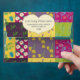 Add a bold custom touch to your invitations with these envelopes. They feature a patchwork quilt style graphic in bold and bright colours with a spot on the front of the envelopes for writing in your recipient's name and address and a heart shape on the back that can be custom printed with your name and return address.