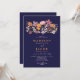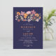 Announce your upcoming wedding with our boho-inspired invitations, featuring pretty and charming wildflowers in trendy earthy tones like orange, sage green, dark red, and dusty pink on dark navy blue. The modern brush script adds a touch of elegance to these unique invitations that are perfect for any boho meadow or woodland-themed celebration., perfect for outdoors and garden wedding ceremony. Add your initial in a flourish frame.