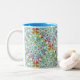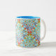 Bright rainbow coloured mug. This fun mug has a turquoise inside.