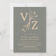 Boho Minimal Sage Green Leaf Monogram Wedding Invitation