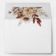 Elegant minimalist typography script her and his names return address personalised wedding envelope in simple terracotta brown fall colour with autumn watercolor floral botanical liner.