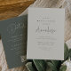 Invite guests to celebrate the bride to be with these modern and minimal bridal shower invitations in earthy boho shades of warm ecru and dark herb green. Simple design features the bride's name in casual handwritten script, with your event details in minimal sans serif lettering. Use the back to add additional details; shown with a recipe request and a registry QR code.