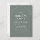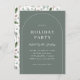 Invite friends and family to a Christmas party with these modern boho invitations. The design features an earthy sage green background, a delicate white arch, and elegant typography, with the hosts’ name in handwritten script calligraphy. The back has a watercolor winter greenery pattern. Editable wording makes it easy to customise for White Elephant, Secret Santa, cookie swaps, dinner parties, or any holiday gathering. Coordinating items are available in our "Boho Modern Arch Christmas" collection linked on this page, or browse our store for more Christmas party invitations.