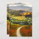 A modern romantic wedding invitation inspired by Italian landscape scenes. A mixed technique fine art painting in festive colours. On the back is a soft overlay to enable your text visibility, framed by watercolor leaves and flowers. Perfect for an Italy themed wedding celebration.
