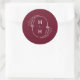 Boho Modern Monogram Elegant Burgundy Wedding Classic Round Sticker