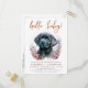 Invite your friends and family to celebrate the arrival of your new baby with this adorable black labrador retriever puppy baby shower invitations, party accessories and gifts . This baby shower invitation features a hand-painted watercolor black lab puppy, perfect for dog lovers! The design is modern and trendy, with a orange terracotta and purple colour scheme and "hello baby" text to celebrate the upcoming arrival of a baby boy or girl. COPYRIGHT © 2023 Judy Burrows, Black Dog Art - All Rights Reserved. Boho Modern Puppy Dog Terracotta Baby Shower Invitation Postcard