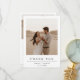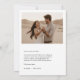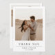 This Boho Modern Wedding 2 Photo Thank You Card features a romantic outdoor setting with the couple embraced in a desert on the front, and a serene sunset landscape on the back.