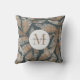 An earthy Boho style monogrammed throw pillow with script name on a pretty earthy rustic smoky grey light brown leaf pattern. A warm accent pillow with muted colours.